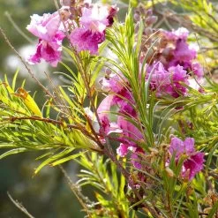 The tree produces flowers with yellow highlights and ruffled petals reminiscent of orchids. Flowers grow in clusters of light pink to red wine, or a mixture of the two. What’s more is that the Bubba Jones Desert Willow is taller than the other members of the ‘Bubba’ series and is also nearly seedless. At maturity, this large tree can reach 20 to 25 feet.Â